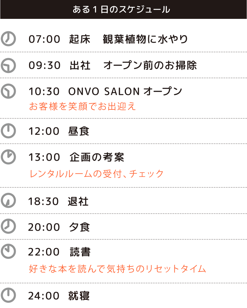 ONVO SALONの店長としてレンタルスペースの運営や企画等に携わっています。